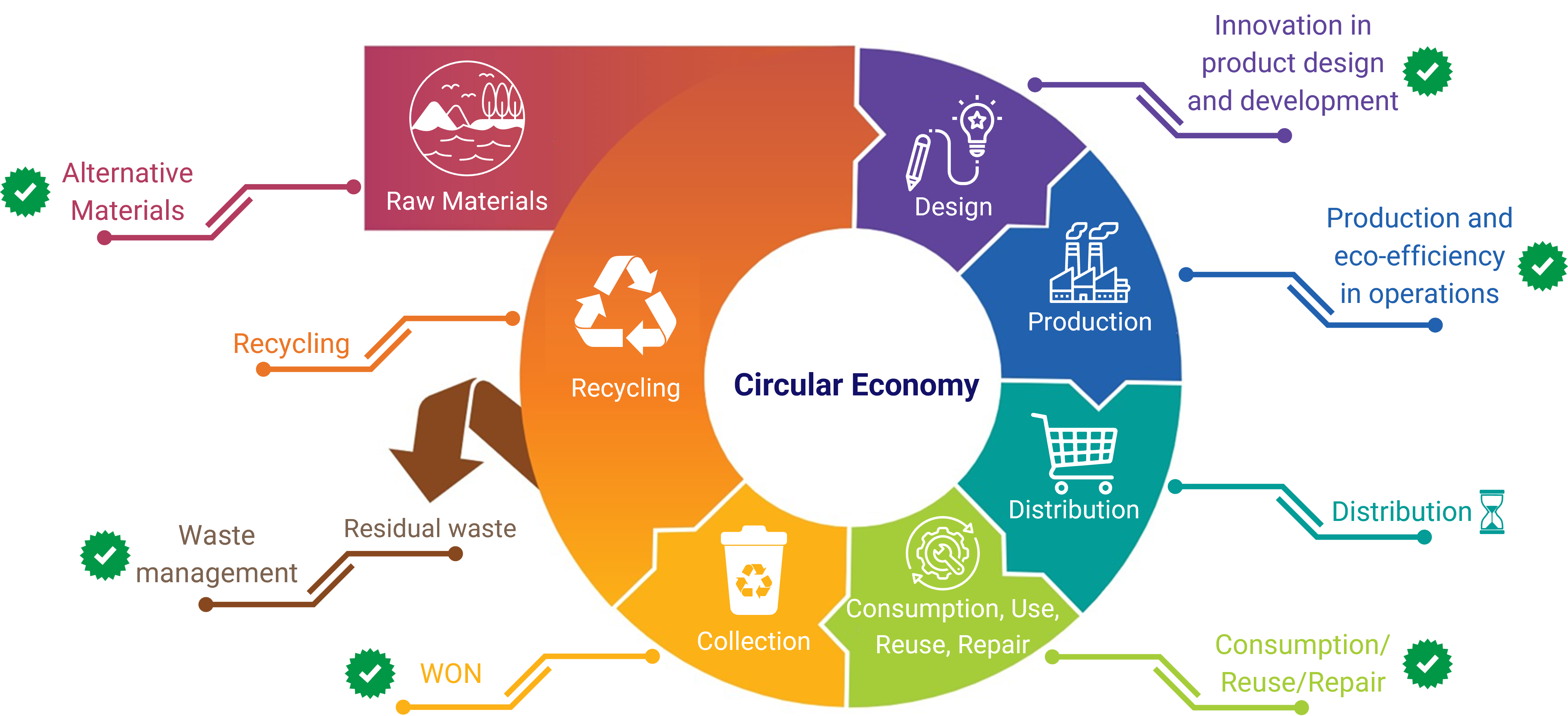 The company has promoted the integration of circular economy principles into all operational processes through awareness creation, changing production behaviors, and operations aligned with circular economy principles, while promoting participation of employees, business partners, and stakeholders.